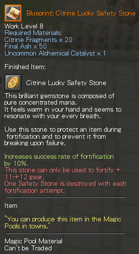 - Citrine Safety Stones are now available. Collect Citrine Fragments and craft them through the new system by talking to NPC Ella in Aven. Players can choose between three blueprint options: Normal, +10%, and +40%.